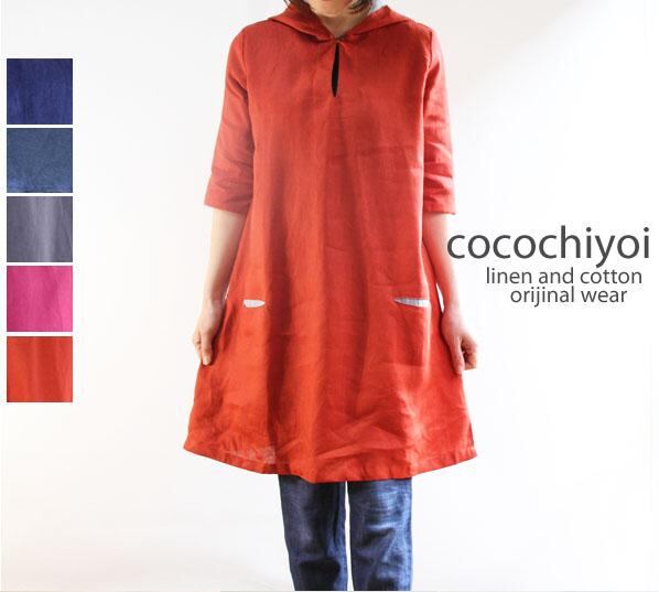 ・リネン フードワンピース