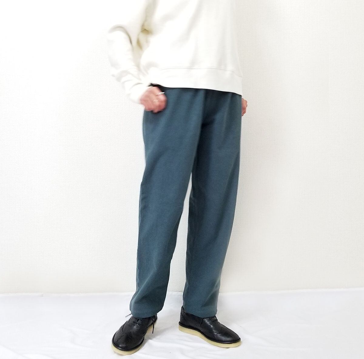 年中使える コットンリネンテーパードパンツ アンティークブルー
