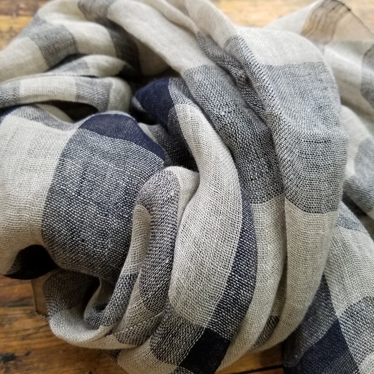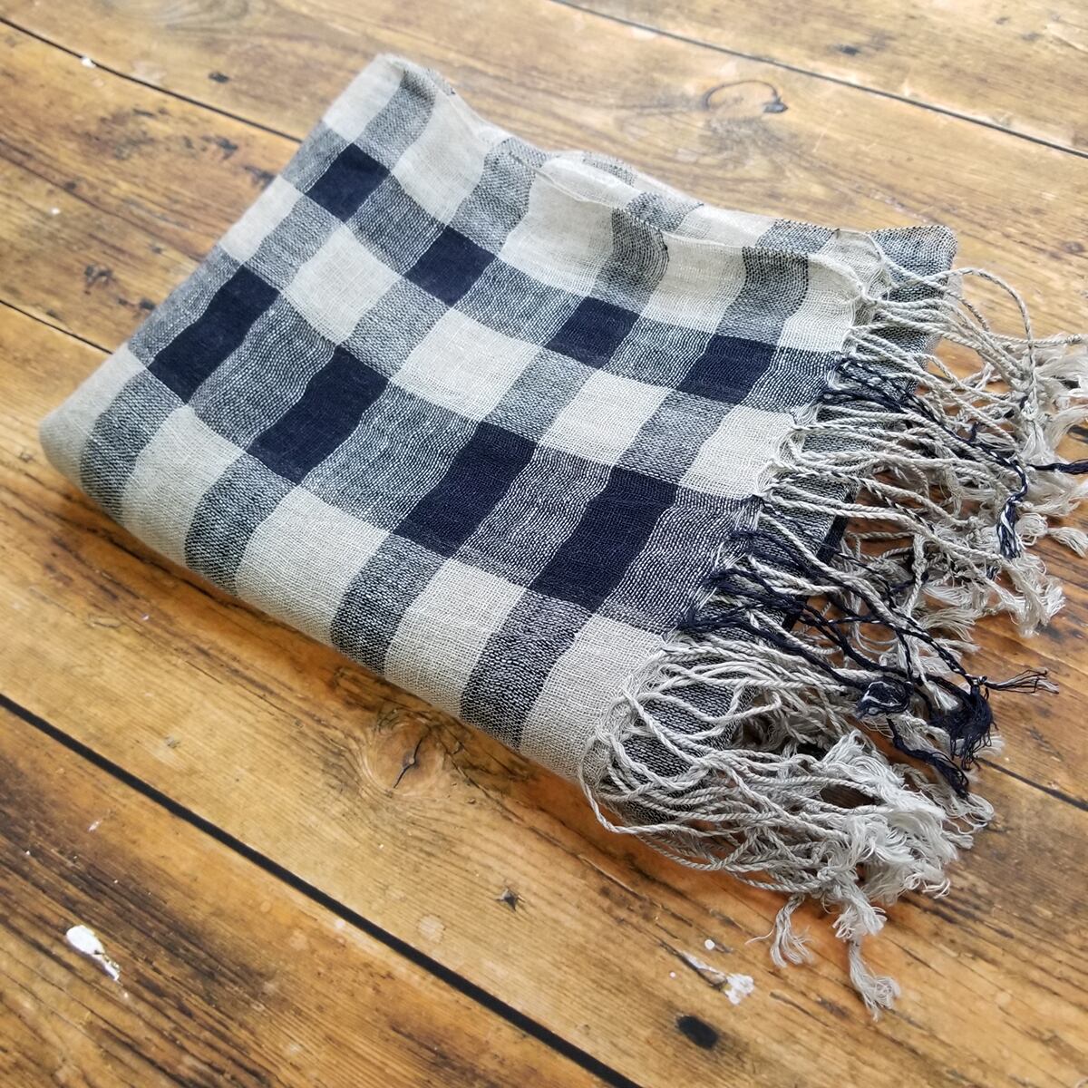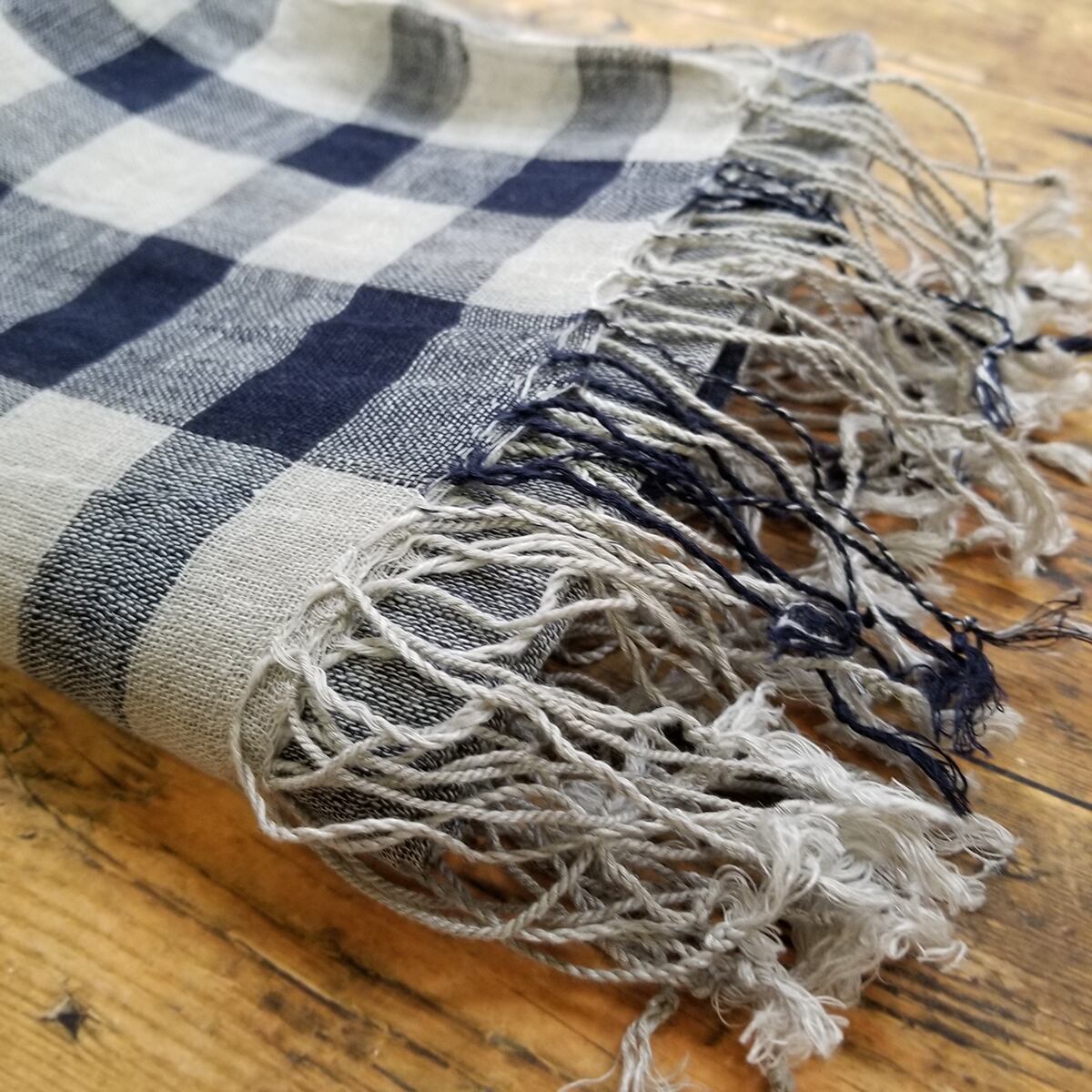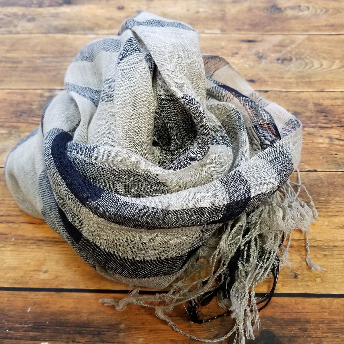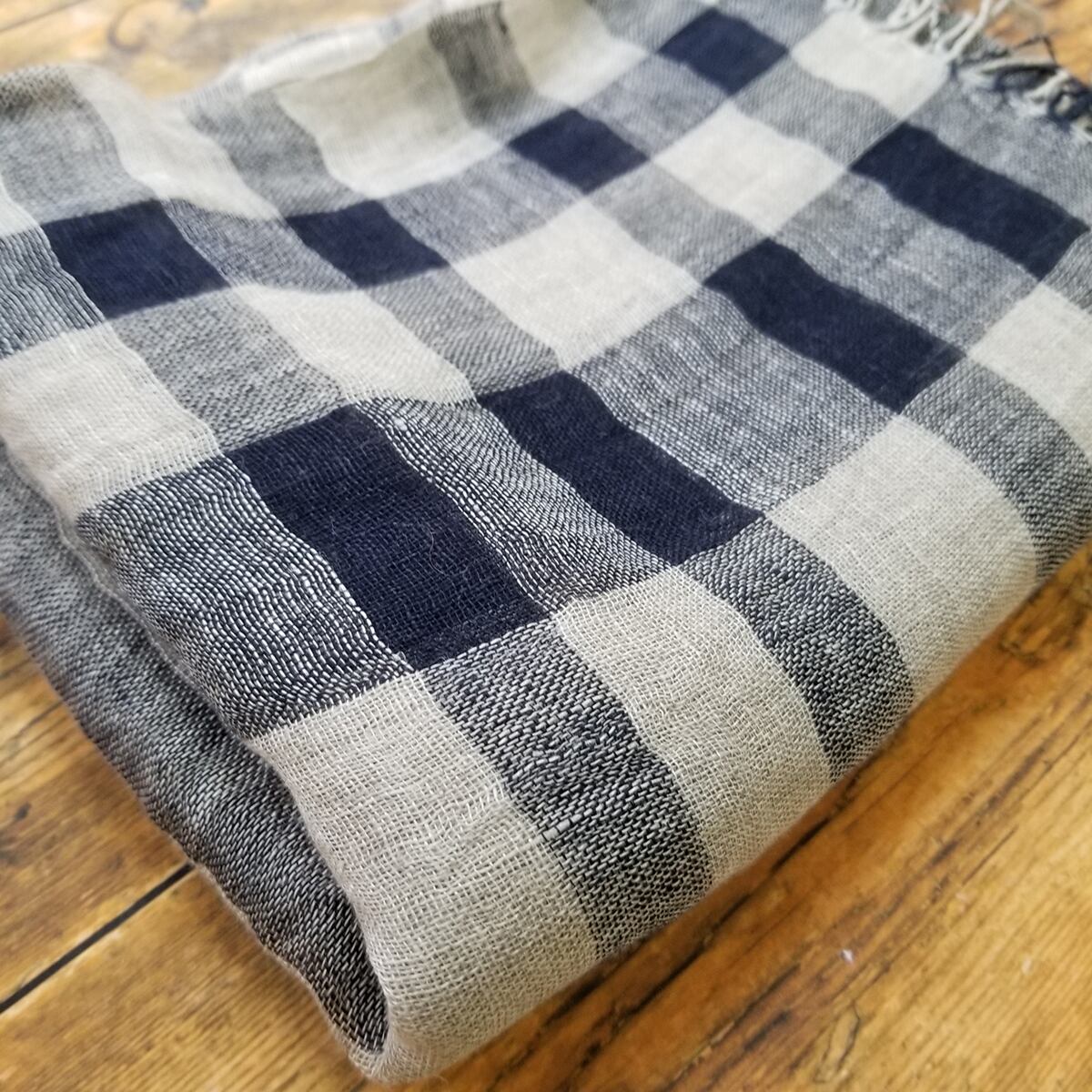 お散歩 紫外線対策★リネンストール ネイビーベージュボーダー